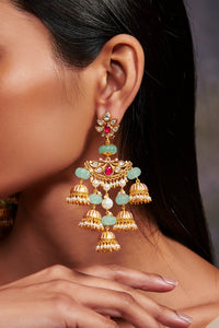 Material- 22 karat gold-plated, atleast 4-6 x thicker than industry standard Recycled brass / hypoallergenic / 100% skin-safe (tested) Color- Gold, Green Dimensions- 9 x 4 cm Product Code- SVEAULE1020