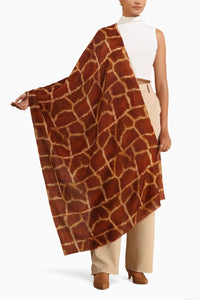 The Stacy stole, crafted from cashmere fine wool, boasts a stylish animal print design. Luxuriously soft and warm, it adds a touch of glamour to any outfit. Versatile for various occasions, it effortlessly elevates your ensemble with trendiness and comfort.