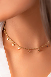 Star Gold Collar Necklace. It has an adjustable clasp with 3 extra links.