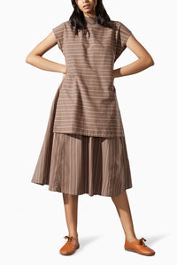 Introducing a playful layered dress crafted from handwoven cotton, featuring a ribbed t-shirt neck for added comfort and casual flair. Ideal for both daytime outings and relaxed evenings, it offers a relaxed yet polished look that embodies effortless charm and laid-back elegance.