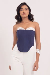 Step out in style with our corset! Whether you're headed to a brunch, party, or date night, this sophisticated and stunning blue and white corset with embroidery details is sure to get some double-takes. Look dazzling and make your mark.