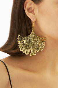 The Statement Bloom Earrings are inspired by the gingko leaf, symbolic of good fortune & longevity. They have been hand-sculpted with fine detailing. This pair can feel a touch heavy.