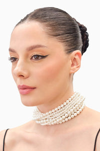 The Statement White Pearl Choker is a bold and striking piece, featuring large, lustrous white pearls arranged in a way that creates a dramatic, eye-catching effect. Its design exudes elegance and sophistication, making it the perfect accessory to elevate any outfit. Whether worn for a special occasion, formal event, or to add a touch of glamour to a more casual look, this choker delivers timeless beauty with a modern flair.
