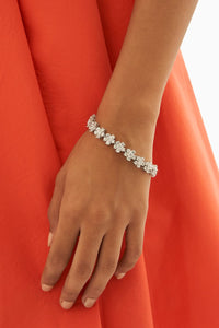 Wear this gorgeous accessory to amplify your formal style or add a hint of grace to your casual style with this soft tennis bracelet with delicate flowers clear crystals set in silver. Simple design and subtle detailing will complement any casual and formal avatars with equal grace and elan.