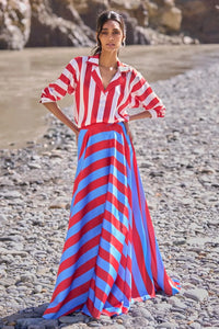 A breezy and bold addition to your wardrobe, this red and white horizontal striped maxi skirt is crafted from a soft, flowy fabric that moves beautifully with every step. Designed for a comfort fit, it features a clean side zip closure for ease and a flattering silhouette. Perfect for daytime outings or relaxed summer evenings, this skirt brings effortless charm to any look.