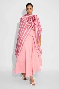 Featuring SHA Striped Wrap Style Coverup by Shasha Gaba, this baby pink shrug blends Indo Western aesthetics with everyday ease. Made from breathable Bemberg twill, its wrap style flatters all silhouettes. Perfect for pret wear it elevates both casual and festive looks with subtle sophistication.