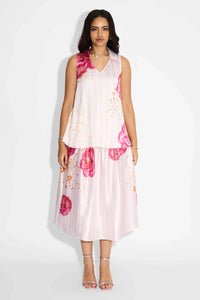 Featuring Stripes Floral Top and Skirt Set by Shasha Gaba, this ivory co-ord is crafted from smooth poly satin, blending bold stripes with delicate floral detailing. Designed for pret wear, the playful top and flowing skirt create a stylish Indo Western ensemble perfect for daytime outings or festive occasions.