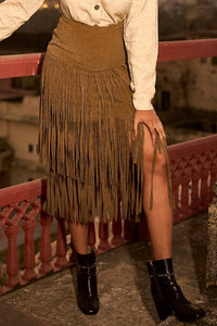 Sueded Fringe Skirt