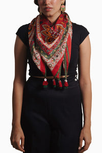 Representing a dynasty of paisley as an artform, the Sultanat Scarf comprehends the richness of culture and workpersonship of the “mango” motif in a unique combination with geometric contrasts. The vibrant hues of the scarf reflect a reimagined legacy to be explored in times to come.