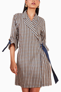Vibrant and playful, this jacket dress effortlessly captures the essence of summer. The wrap silhouette and pleat detailing add a touch of elegance to the relaxed ensemble.