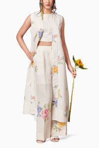 Composition- Linen Color- Ivory and Multi Fit- Overlay - True Fit Crop Top- True Fit Trouser- Relaxed Fit Components- 3 Product Code- SVEMOHRSS24SRO2D1CWSRT1