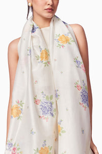 Introducing the Summer Roses Stole, an exquisite accessory in Chanderi silk. Adorned with delicate white cross-stitch roses, it evokes timeless elegance and charm. Draping effortlessly, this stole adds a touch of refined grace to any ensemble. Embrace the essence of summer's bloom and elevate your style with this luxurious piece.