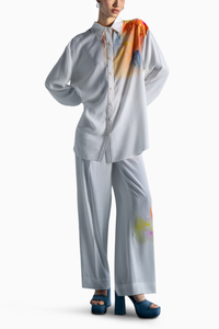 Introducing the Sundowner twill hand-painted embroidered co-ord set. Elevate your style with this meticulously crafted ensemble, blending embroidery with a timeless white twill fabric. Perfect for sundown gatherings, this set exudes sophistication and unique artistry, making a bold statement in contemporary fashion.