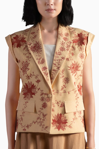 Discover timeless elegance with our sophisticated all-over embroidered jacket, designed with overturned shoulders for a bold and distinctive silhouette. The monochromatic shaded embroidery enhances its classic appeal, making this jacket a versatile statement piece suitable for any occasion. Its refined details and striking design ensure you make a memorable impression wherever you go.