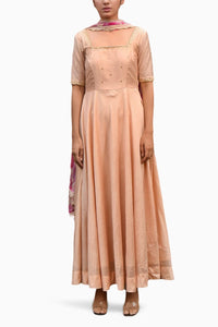 Fabric- Chanderi Silk Color- Peach Embroidery- Beads, Sequins Handwork Fit- Fit and Flared Components- 3 Product Code- SVETAROGD5721