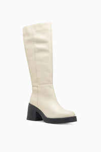 These off-white Sunset long boots are lined with soft fur for added comfort and warmth. The sturdy heel is designed for long days, offering both style and support to keep you comfortable all day long.