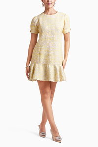 Embrace timeless elegance with our tweed dress adorned with delicate ruffled touches and a dreamy silhouette. A true staple for the season, this dress effortlessly combines sophistication with a touch of whimsy, making it the perfect choice for any stylish occasion.