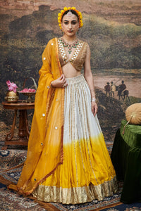 Composition: Blouse- Chanderi, Bottom- Cambric Cotton, Chanderi, Dupatta: Organza Color: Yellow and White Components: 3 Product Code: SVEITRHITRHWD17