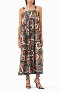 The Sura ya dress is a showstopper! This stunning ma xi dress cra fted in pure linen blend with its intrica te ha nd-cra fted Suzeni embroidery is sure to turn hea ds effortlessly! Fea turing a color combina tion tha t crea tes a true work of a rt, this dress blends comfort with “ gorgeous “style. The smocking on top provides a fla ttering fit, while the hidden pockets a dd pra ctica lity without compromising the dress's elega nce. Cra fted on a rich midnight ba se, the Sura ya dress is THE choice for a chic summer night out.