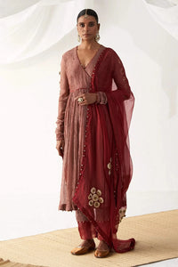 Composition: Top- Tissue, Bottom- Tissue, Dupattas- Organza Color: Red Fit: Tailored Fit Components: 3 (Angrakha, Pants, Dupatta) Product Code: SVEITRH-TS116