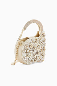 Material- Floral Metallic Embellishment, Lining- Suede Color- Ivory Details- Embellished Closure- Button Lock Dimensions- Bag (cm) 14.5*19*3.5 Product Code- SVEANAAAN-HB-019
