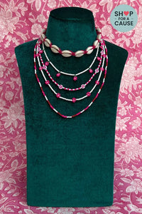 Composition: Glass Beads Color: Pink Components: 1 Size: Longest- 20", Shortest- 12" Product Code: SVETPDKFVAL004