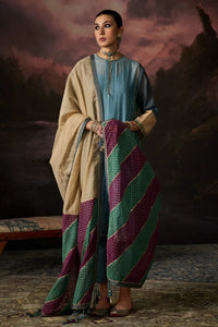 Featuring the Tahira Multicolor Dupatta from Swatti Kapoor’s Firdaus collection. This handwoven 40gm Chanderi dupatta showcases hand block printing and hand block foil printing, accented by a handwoven Chanderi Zari stripe border and a spliced border. It is beautifully finished with fringing and tassel details, adding a refined touch to the piece.