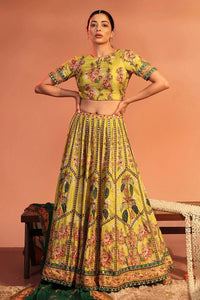 This stunning ensemble features a yellow Tamaya embroidered lehenga paired with a matching blouse, both crafted from luxurious Malaysian silk. The lehenga is beautifully adorned with intricate Tamaya embroidery, adding a rich, traditional charm to the outfit. The blouse complements the lehenga with its elegant design, while the lightweight organza dupatta drapes gracefully, enhancing the overall sophistication.