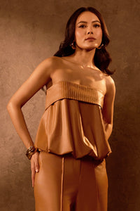 Playful yet classic, this faux leather tube top features a bubble silhouette and intricate stitch detailing. Pair it with matching bottoms for a look that goes from brunch to bar with ease