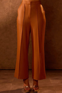 Tailored using soft, peel-proof faux leather, these trousers feature a stitch detail in the front. Pair them with our matching tube bubble top for the perfect noon-to-night look.