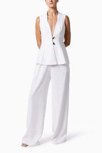 Composition- Japanese Crepe Colour- White Fit- Designed to be fitted at the waist and loose over the leg Customization - There will be an additional 10% charge Size Guide- Measurements in the size guide are ready garment measurements Components- Product code - SVE43182220902