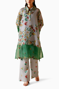 Experience the perfect blend of elegance and chic style with the Tara Printed Kurta Set, crafted in this season's signature Chintz print. The relaxed tunic effortlessly pairs with coordinating printed pants and features stunning multi-colored sequins and bead embroidery along the sleeves, collar, and hem. Elevate your wardrobe with this sophisticated ensemble!