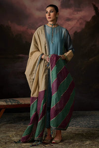 Featuring the Tara Shades Of Blue Kurta Set by Swatti Kapoor's Firdaus collection. This handwoven 40gm Chanderi kurta and dupatta with zari stripe borders come with a 100% cotton slip and comfortable pants, all adorned with exquisite hand embroidery.