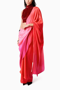 Composition- Silk Colour- Ombre Pink Red Fit- This sari fits true to size, takes the shape of your body as it is a drape. The sari is high waisted, get it according to your high waist size. The blouse is cut for a slim fit. Customization - There will be an additional 10% charge Size Guide- Measurements in the size guide are ready garment measurements Components- Product code - SVE43182220203&1201605V