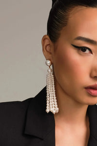 Featuring Tassel White Pearl Earrings by Anaash X Ekaya, these elegant earrings showcase a flowing tassel design crafted from manufactured pearls and hypoallergenic brass. In a luminous white finish, they add a graceful, contemporary edge to any sophisticated look.