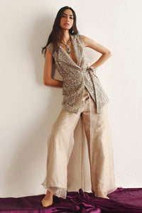 Taupe Silk Organza Double Layered Palazzo Pants