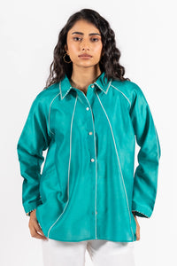 Featuring the Harper Shirt by URAIB's A/W'25 Collection. Crafted in rich Cotton Chanderi, this front-open shirt is elevated with contrast piping details and embellished collars and cuffs for a refined, statement look. With its long sleeves and true-to-size fit, it brings together timeless sophistication and modern edge effortlessly.