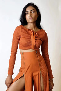 The top was reversible, with a smocked texture. She pulled the drawstring that allowed her to decide where the hem would sit, and tied into a neat bow. I wondered what she would wear on her legs - the top went with everything she'd packed for the trip!
