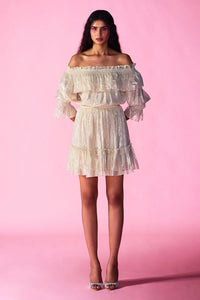 shimmer chiffon, off-shoulder style, mini length -