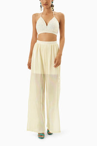 The Thani Sequin Bikini Set is an alluring creation from Aqua. Crafted from responsibly sourced lycra, net and shimmer that has a luxuriantly soft touch and delicate sheen, its wrap silhouette creates a shallow V-neckline and is anchored with matching straight falling pants.