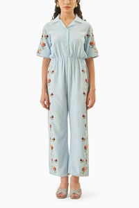 Redefined and flattering. Structured and yet delicate. Beautifully crafted in soft bamboo cotton, cross stich embroidery and abundance of lace makes this jumpsuit a heads turning statement.