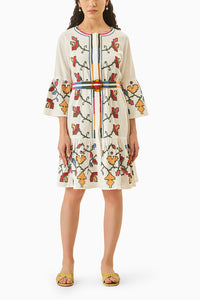 Exquisite all over multi colored cross stitch embroidered dress with an embroidered belt.