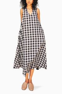 Embrace timeless style with our classic black and white checkered dress, crafted from breathable soft cotton for ultimate comfort and relaxation. The V neckline adds a touch of elegance, while the side seam pockets offer practicality and ease. Perfect for a chic, laid-back look.