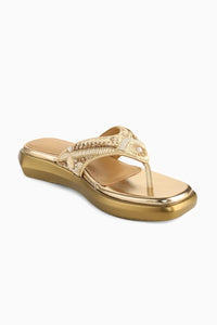 C for Charisma. H for Haute. I for Inseparable. C for Chic. A for Authentic. S for Sassy. Meet The Chicas! The Chicas sandals are crafted from luxurious gold satin and embellished with wooden squares, jute embroidery, and matching beads. They also feature accents of white and iridescent brown cutdana work, beige sequins, pearls, and fur-like balls. The sole brings Anaar’s signature comfort and is accompanied by our new V-shaped strap. This is our ode to the chicas who always have each other’s backs; from ladies who lunch to the 2 am bunch.
