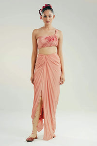 The Dotted One-Shoulder Bustier and Draped Dhoti Skirt Set