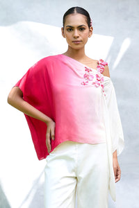 Draped top with our signature 3D floral burst embroidery. Ombre dyed.