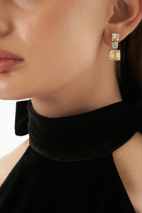 Featuring The Golden Splendor Earrings by KAI Jewels. An exquisite set of earrings radiating with the beauty of luxurious yellow gemstones meticulously studded in pure silver. The exclusive drop design adds a touch of glamour perfect for any occasion, from glamorous galas to intimate soirées. Each pair is a masterpiece of craftsmanship, designed to be a timeless treasure.