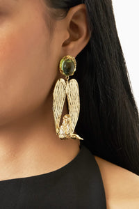 Art Nouveau Swans hand sculpted, set with a rich olive accent stone with a delicate leaf etched prongs. These earrings are a touch heavy but a statement pair !