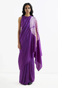 Handwoven silk Handsfree saree in purple with an elaborate shibori