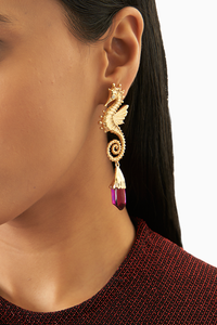 Lightweight and playful, these elegant Seahorse earrings with a hand carved ruby pink stone catch the light in the most mesmerizing twinkle.